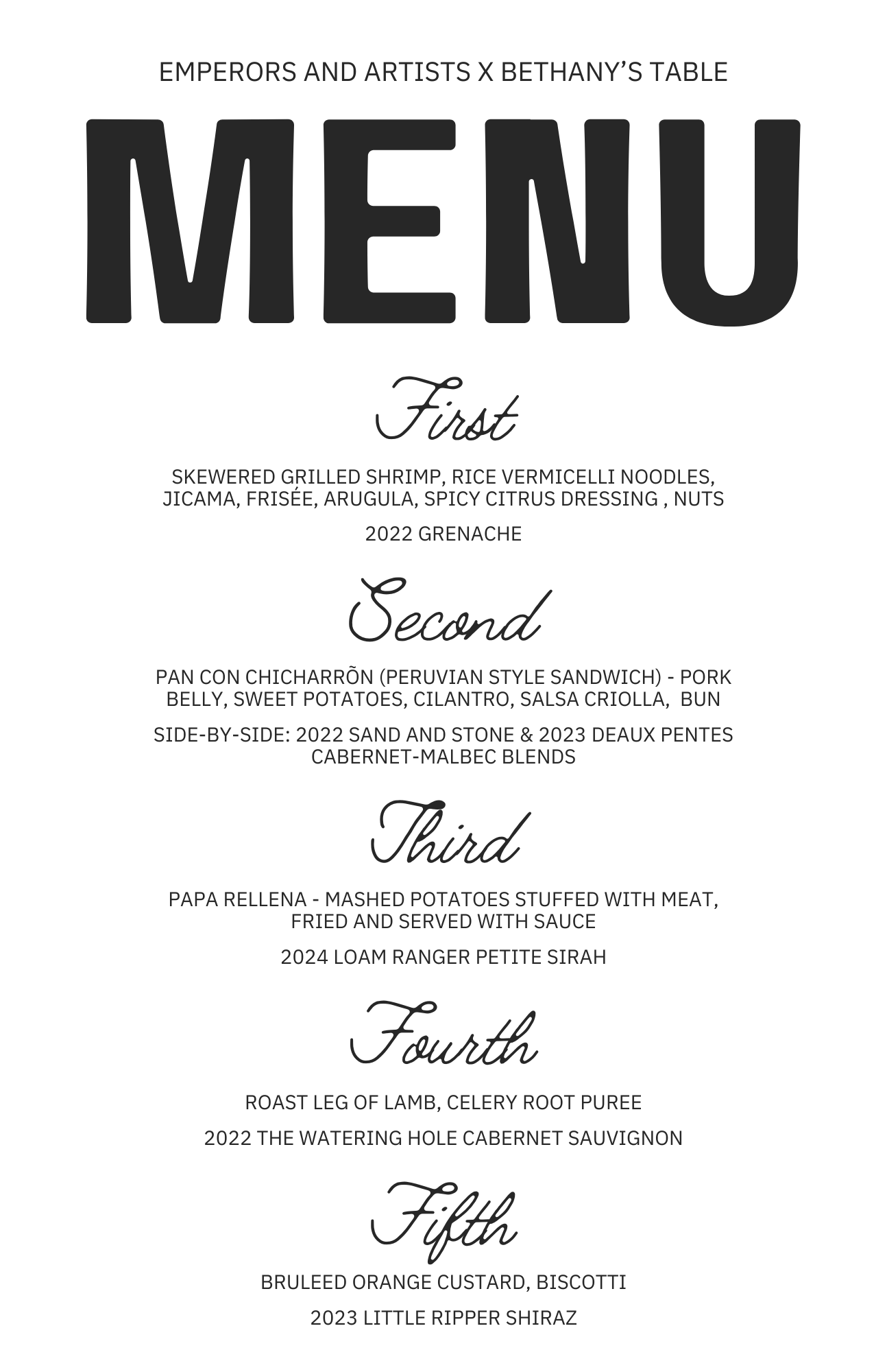 Tickets: dinner is $125/person. A $25 deposit will hold your seat and be credited towards your meal. A 20% gratuity will be added to your final bill.